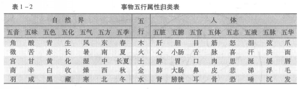 其二,间接的推演法。所谓间接的推演法,是根据已知事物的五行属性,推演至其他相关的事物,以求知其五行属性的思维方法。在对人体的五行归类中,大部分事物的属性归类都是根据这一方法求知的。例如已知肝具有疏泄、条达、主升发的特性,属性为木,肝所主的筋体柔和,屈伸自如,符合“木日曲直”的特性,亦属木。与肝相表里的胆,具有贮藏胆汁、排泄胆汁的功能,亦有疏畅条达特性,其属性亦为木。可见肝、胆、筋的五行属性是属直接取象比类所求知的。但是肝在窃为目、在液为泪、在志为怒、其华在爪等,只能根据肝的属性为木,而爪、目、泪、怒为肝所主,故亦属于木。显然这是通过间接推理所得的结果。通过五行归类,将自然界以及人体许多复杂的事物和现象有机地联系在一起,形成了木、火、土、金、水五大系统。
