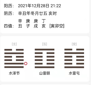 2021年12月28日21时多,女问能否与男友结婚,以问时起梅花卦: