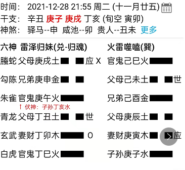 女问感情以官鬼为用神,以世爻代表自己及自己家庭,应爻代表对方及对方家庭。