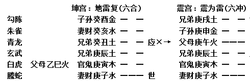 比如卯月乙卯日,弟弟占兄长已经定了重罪,叩问能否救出,得到地雷复卦,变作震为雷卦:
