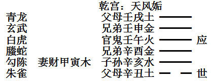 又如巳月丙申日占病,得到姤卦