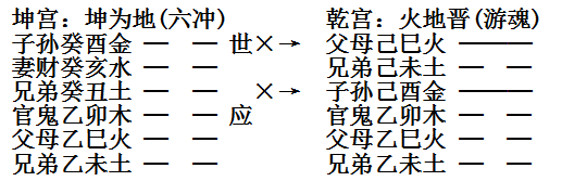 假设子月卯日占问,得到坤卦,变为火地晋卦: