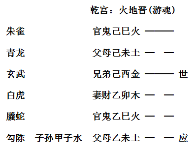 例如午月戊辰日,占妹妹临产吉凶,得到火地晋卦∶