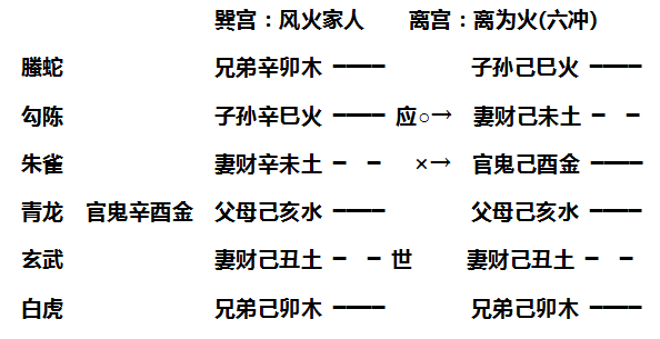 例如寅月庚申日,占儿子的痘症,得到风火家人卦,变为离卦∶