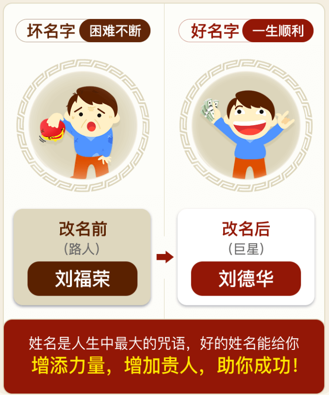 可见名字对一个人的影响有多大。所谓有其形必有其象,有其象必有其事儿,形象不好的名字必然会带来不好的后果。为了宝宝的将来请赐给他一个好名吧!