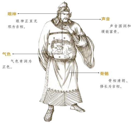 金相眼形:金相眼如卧弓,眼神刚毅,好杀戮。金相声音:金相声音音韵绵长,清脆响亮。